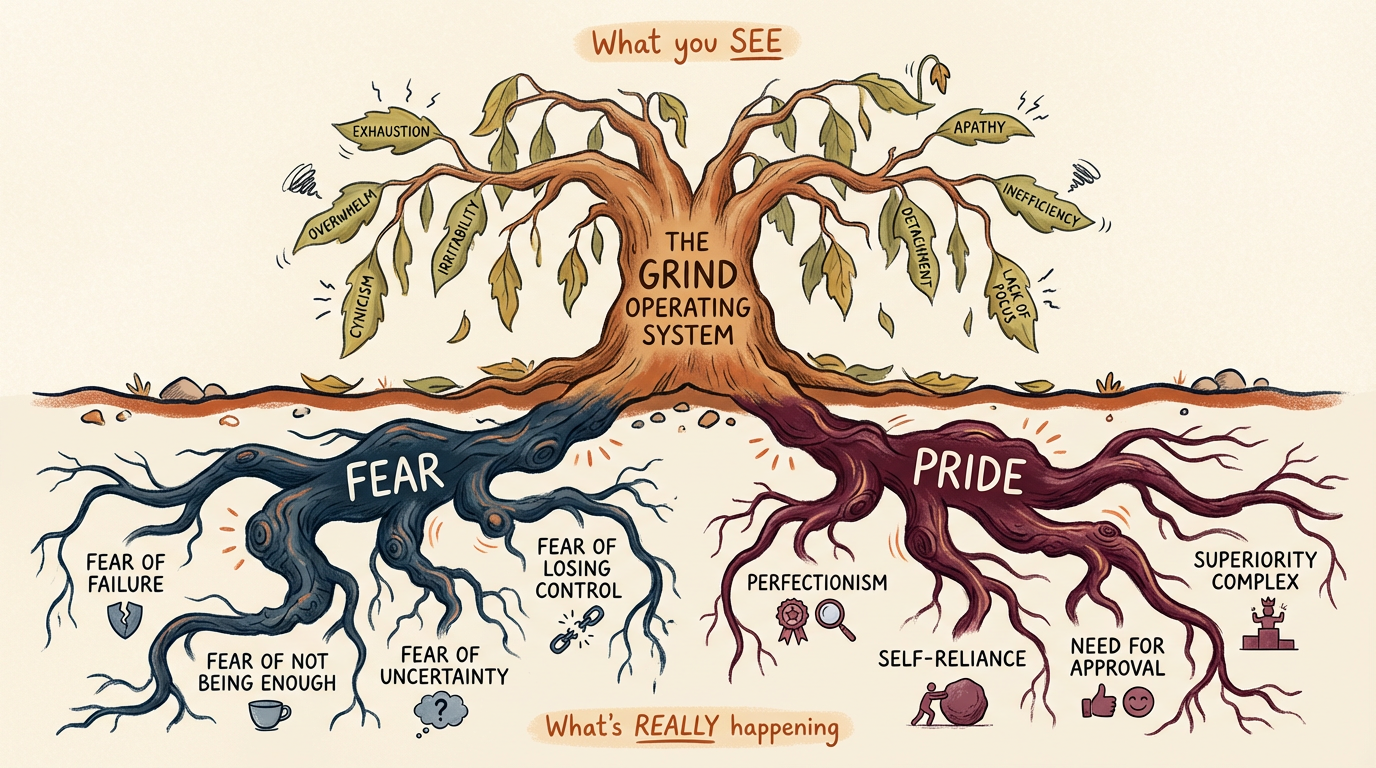 The slow, steady erosion doesn't start with personal or team burnout; it starts with how you make decisions and what drives them. And when I work with CEOs to trace the grind back to its roots, two culprits show up repeatedly: fear and pride.